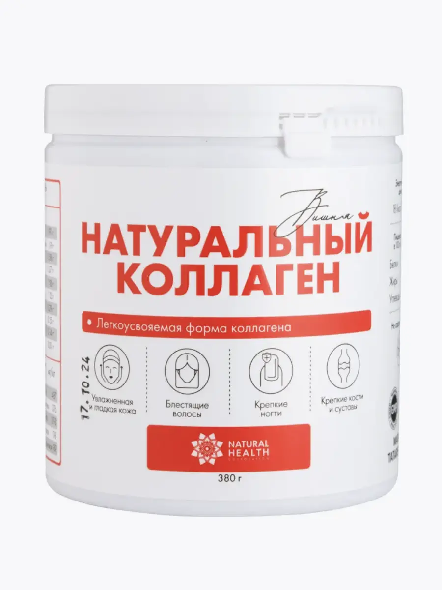 Говяжий коллаген в форме желе от компании Natural Health способствует восстановлению и поддержанию здоровья костей, суставов, хрящей и связок, ускоряет заживление тканей после травм и позволяет снизить риск развития остеохондроза. Он также улучшает состояние кожи, повышая её эластичность и увлажнённость, и помогает компенсировать естественное возрастное снижение выработки собственного коллагена.