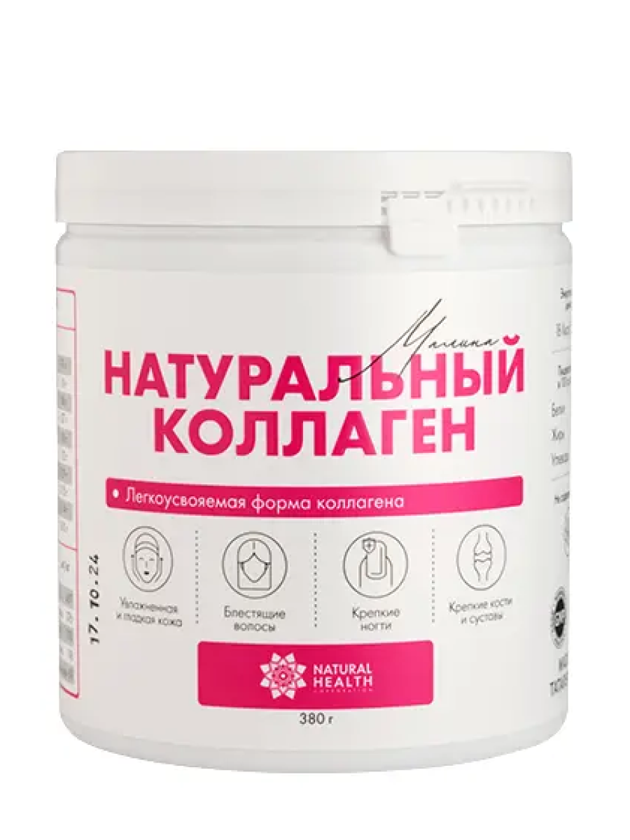 Говяжий коллаген в форме желе от компании Natural Health способствует восстановлению и поддержанию здоровья костей, суставов, хрящей и связок, ускоряет заживление тканей после травм и позволяет снизить риск развития остеохондроза. Он также улучшает состояние кожи, повышая её эластичность и увлажнённость, и помогает компенсировать естественное возрастное снижение выработки собственного коллагена.