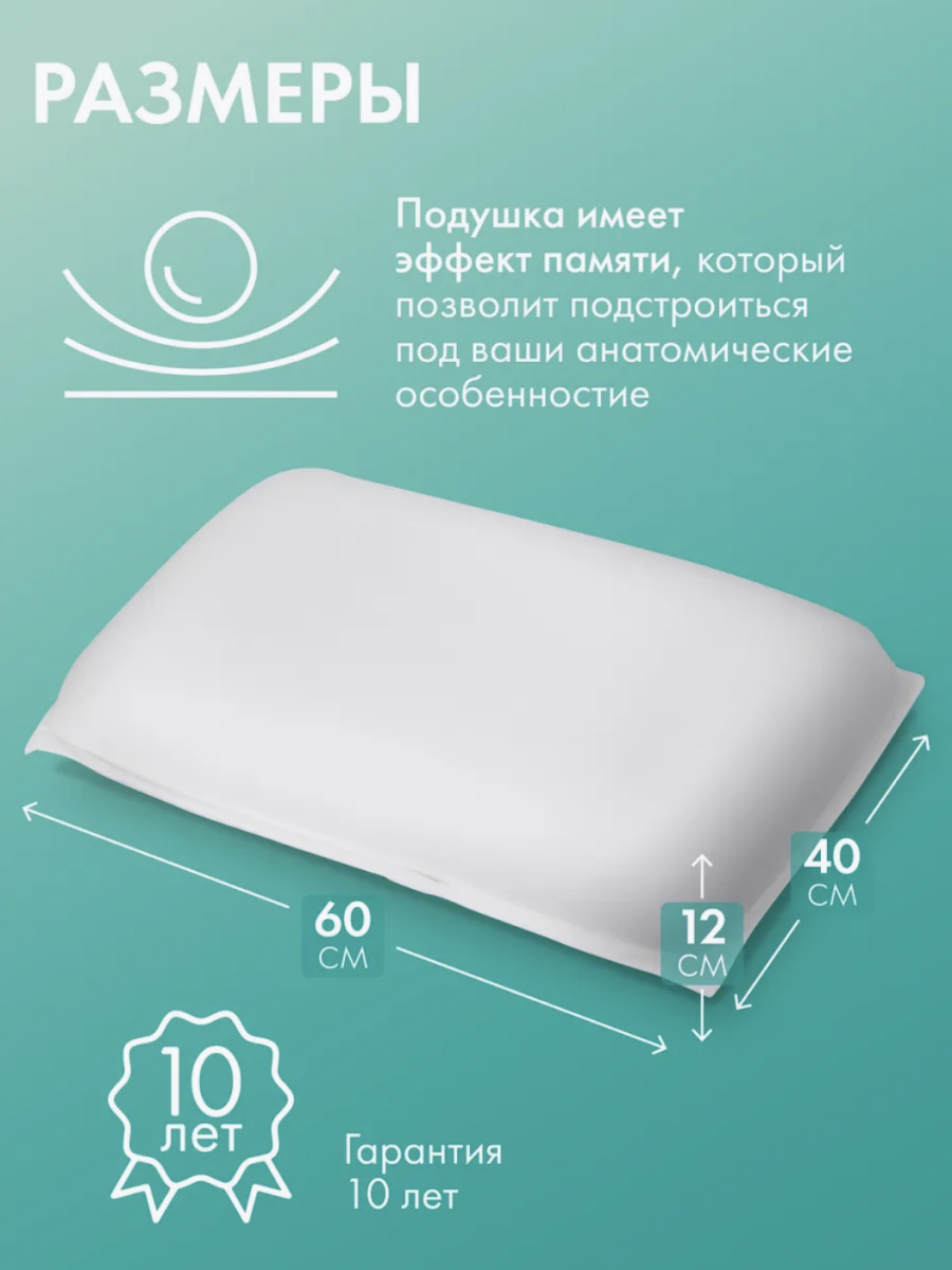 Memory Foam · 40×60 · 12 см · Гарантия 10 лет