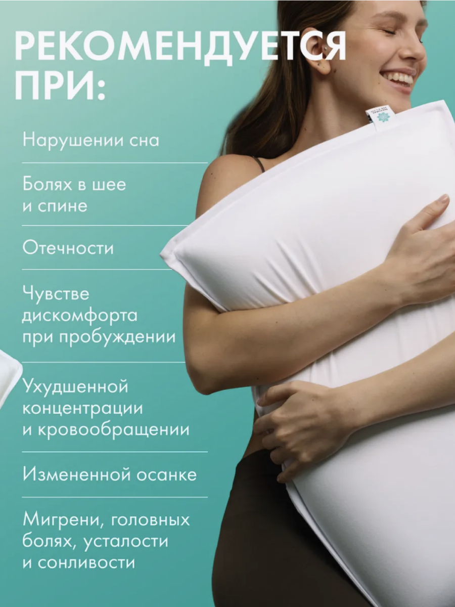 Поддерживает голову и шейный отдел позвоночника · Снижает напряжение в мышцах шеи и спины · Улучшает кровообращение · Обеспечивает комфортный глубокий сон · Оказывает освежающее действие благодаря охлаждающему гелевому слою
